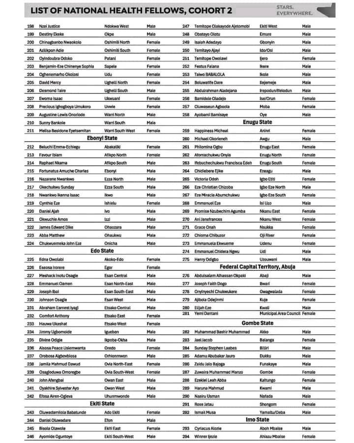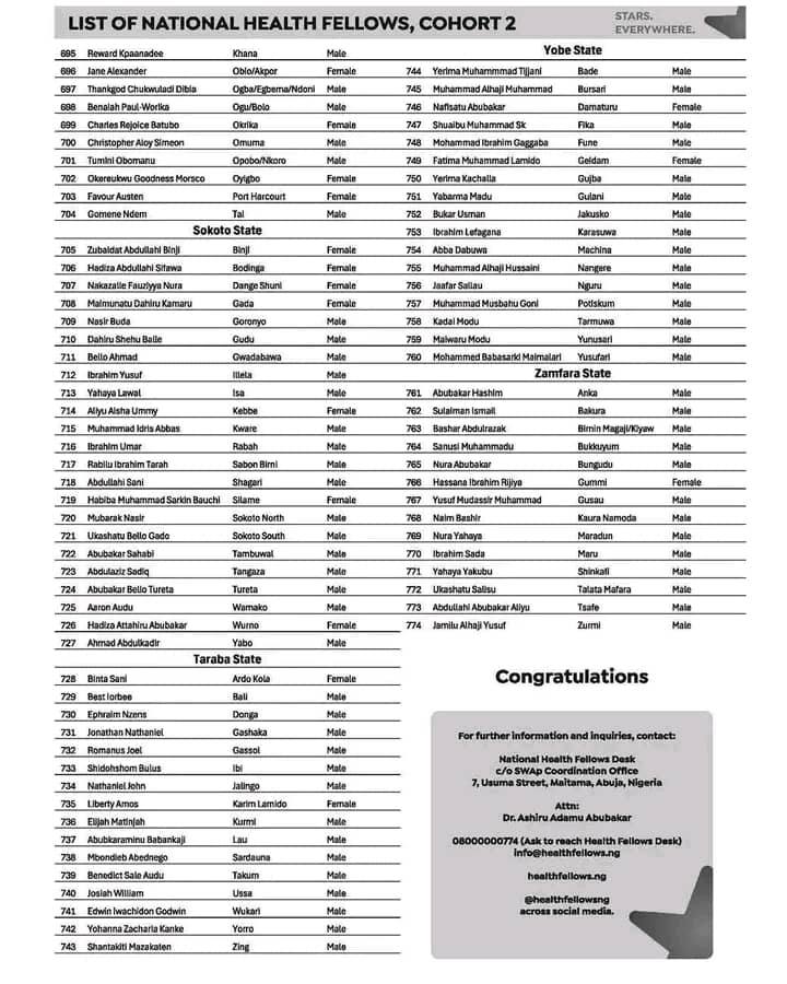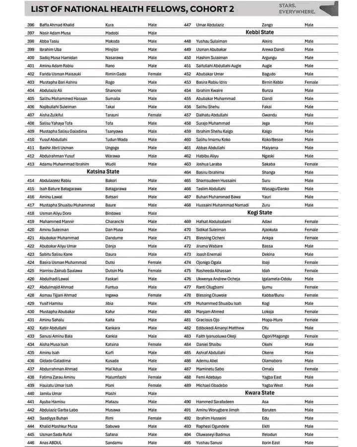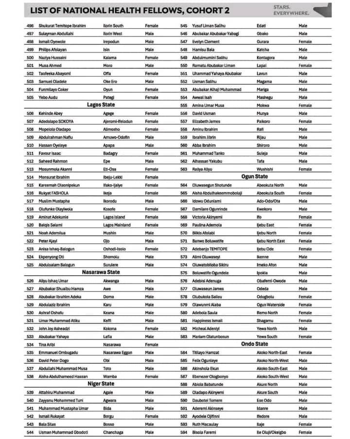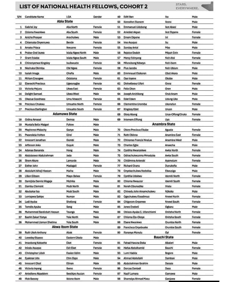 The Federal Government of Nigeria has released the final shortlisted names for the National Health Fellows Programme, with a total of 774 fellows selected nationwide, representing one fellow per Local Government Area.